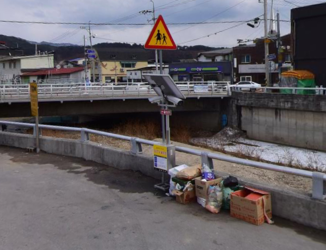 배출장소 : 어린이집 방향으로 골목을 나오면 하천변에 쓰레기 및 재활용품 배출처가 있습니다.